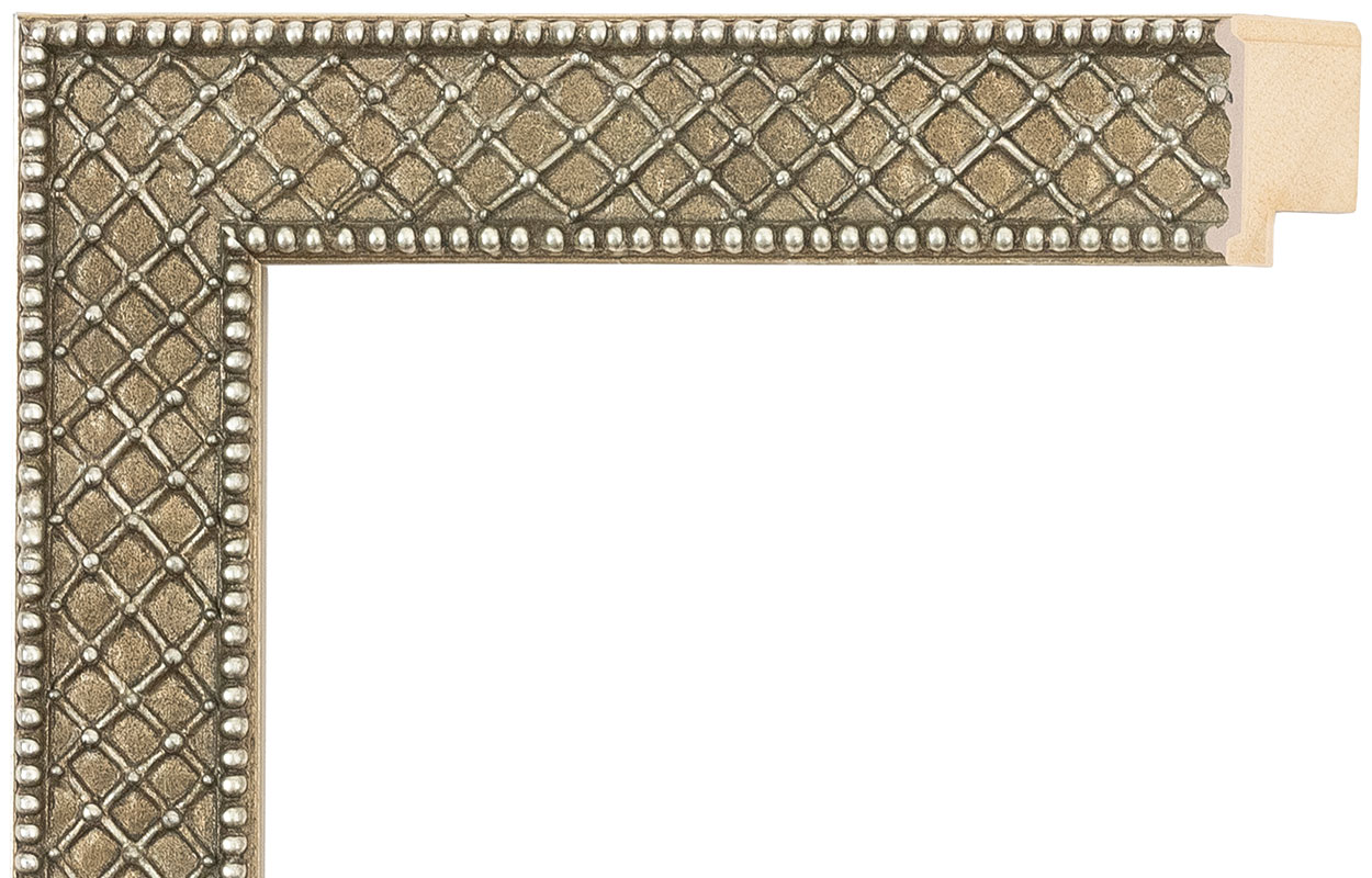 繊細な格子のエンボス加工の装飾に、アンティーク調金銀の仕上げが施されたコレクション。